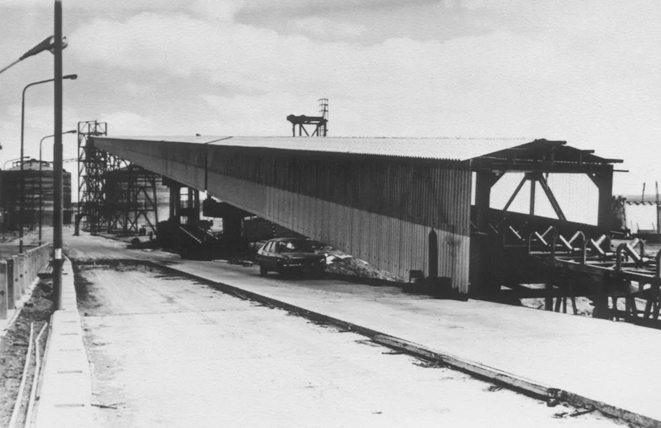 Una de las imágenes captadas por Muraro, a principios de los 70, correspondería al primer buque que operó, atracó en el muelle Almirante Storni, aún sin concluir su construcción.