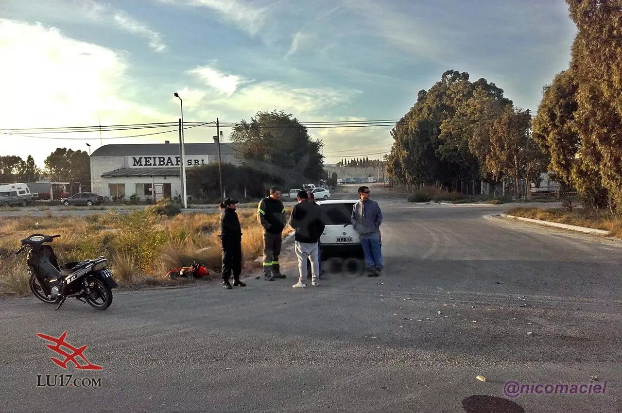 El accidente ocurrió a las 7.00 de este martes sobre la Ruta Provincial 4, en uno de los primeros accesos. Según testigos ocasionales, el Fiat Uno se dirigía de este a oeste cuando doblando a la izquierda para ingresar a “la zona Infa” no se habría percatado que en dirección contraria se trasladaba una moto.