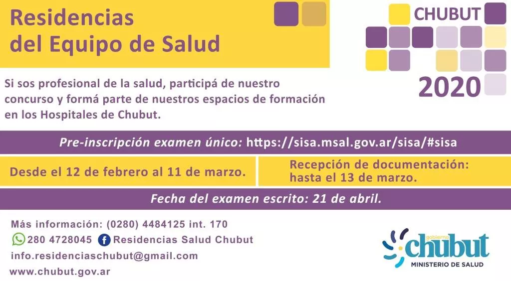 También pueden consultar el sitio de Facebook “Residencias Salud Chubut” o la página web www.chubut.gov.ar