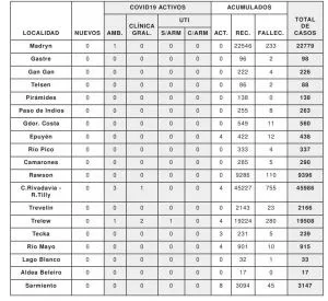 CHUBUT SIN FALLECIDOS NI REPORTE DE NUEVOS CONTAGIOS DE COVID