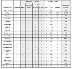 SIN FALLECIDOS, CHUBUT REPORTÓ UN POSITIVO DE COVID