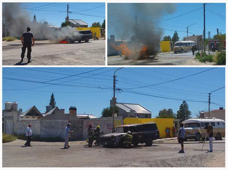 Circulaba por la intersección de Estivaris y Entre Ríos hacía el este y por un desperfecto eléctrico tomó fuego en la parte del motor. Hubo temor a que el fuego haga explotar el equipo de GNC del vehículo.