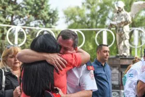 La Plaza San Martín fue el epicentro de un acto homenaje con formación de honor del Cuerpo Activo y ofrendas florales en el monumento al Mártir Bombero Voluntario, obra del artista chubutense Sergio Owen. Un familiar de los 25 bomberos y una integrante de la Comisión Directiva de la Asociación fueron los dos únicas personas oradoras en el acto que contó con la presencia del intendente Gustavo Sastre, autoridades nacionales, provinciales y municipales.