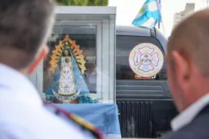 Luego, a las 9:15, se realizó el tradicional responso en el panteón que la Asociación posee en el cementerio local y en el que descansan los restos de la mayoría de los bomberos fallecidos el 21 de enero de 1994. En esta oportunidad, además se realizó la entronización de la imagen de la Virgen de Luján que un bombero de la localidad bonaerense de Orense y su esposa han hecho peregrinar por más de 30 cuarteles de las provincias de Buenos Aires, Río Negro y Chubut, quedando emplazada de manera permanente en el panteón.