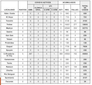 CHUBUT REPORTÓ 9 POSITIVOS DE COVID Y UN FALLECIDO