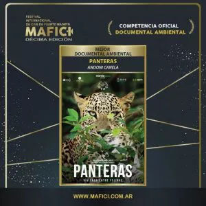 El jurado conformado por Ignacio Oruezabala (Director de contenidos de GREENPEACE Andino), Mónica Simonsini DOCUMETALISTA (DOCA) , Lucila Kesselman (CONICET) entrega el premio al MEJOR DOCUMENTAL AMBIENTAL de la Competencia Oficial de MAFICI 2022 a Panteras de Andoni Canela.