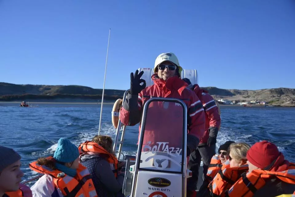 Los turistas que visitan Pirámides y se embarcan para ver de cerca las ballenas no dejan de sorprenderse por el contacto cercano que establecen con los mamíferos.