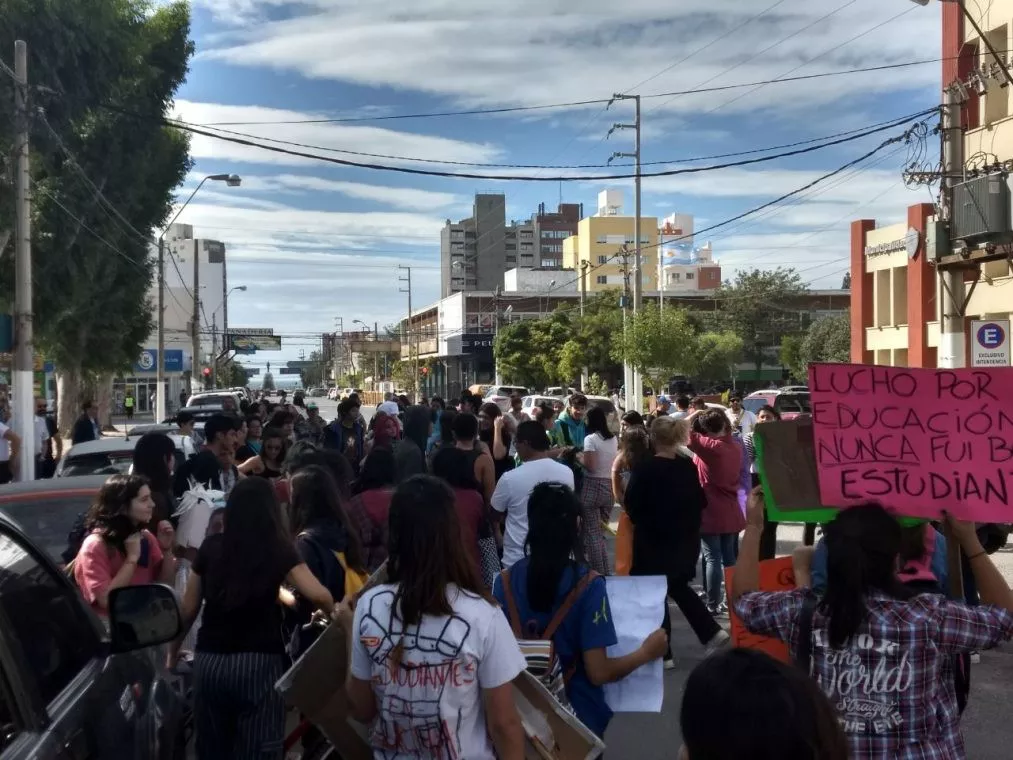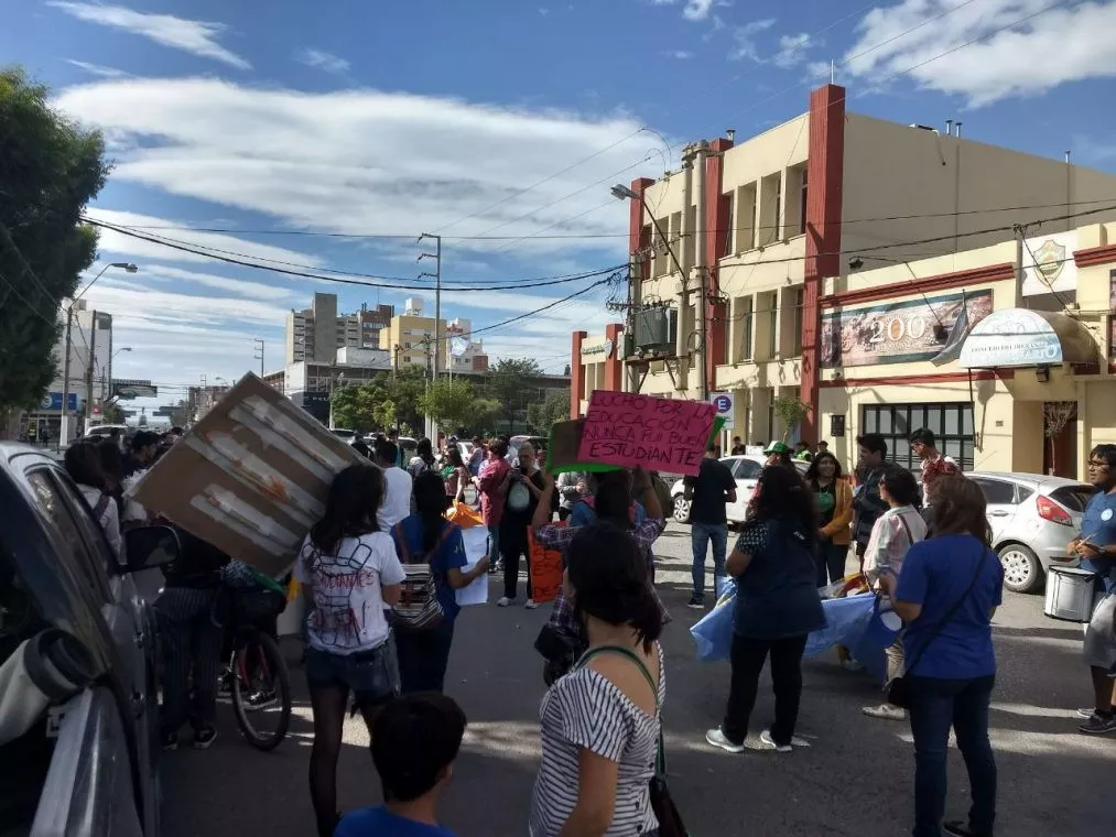 Un grupo de docentes y auxiliares, acompañados por alumnos, se convocaron durante la mañana en la Plaza San Martín. Allí llevaron adelante una “Radio Abierta” para “transmitir a la comunidad todas las problemáticas”, según explicó una de las organizadoras de la movilización.