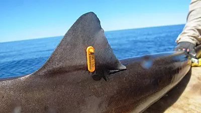Un ejemplar de tiburón cazón hembra fue encontrado en Uruguay a 1500 km de su lugar de marcado en l...
