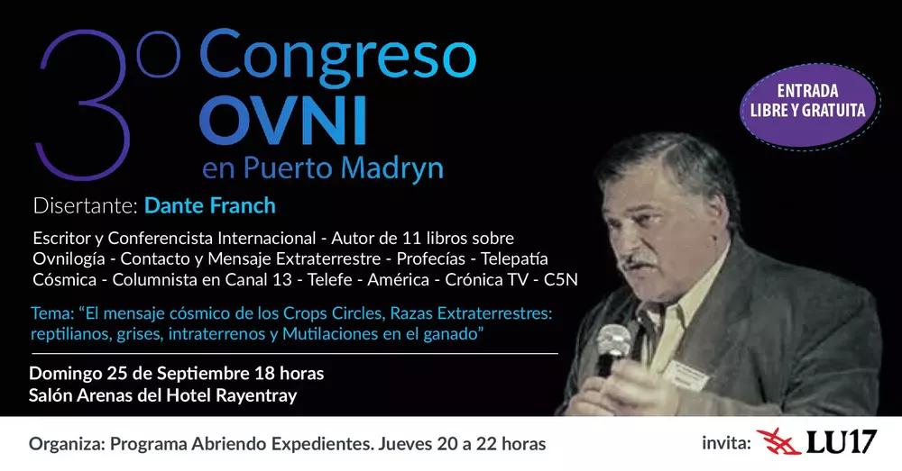 El encuentro será en el Hotel Rayentray con entrada libre y gratuita y entre otros temas hablará de los círculos en los campos de maíz y razas extraterrestres conocidas y que habitan entre nosotros.