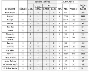 SIN FALLECIDOS, CHUBUT REPORTÓ UN POSITIVO DE COVID
