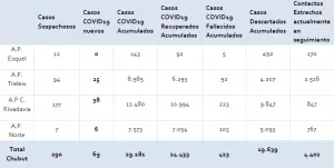 CHUBUT REPORTÓ 69 NUEVOS CASOS POSITIVOS DE COVID Y 2 FALLECIDOS