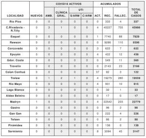 SIN FALLECIDOS, CHUBUT REPORTÓ UN POSITIVO DE COVID