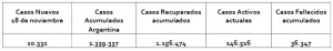 La cartera sanitaria indicó que son 4.267 los internados en unidades de terapia intensiva, con un porcentaje de ocupación de camas de adultos de 58% en el país y del 60,5% en la Área Metropolitana Buenos Aires.