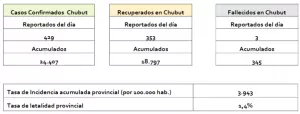 CHUBUT REPORTÓ 429 NUEVOS CASOS POSITIVOS DE COVID Y 3 FALLECIDOS