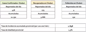 COVID-19: CHUBUT REPORTÓ 478 NUEVOS POSITIVOS Y 4 FALLECIDOS