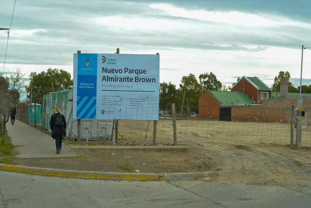 Avanza en Trelew la construcción del Parque Almirante Brown, que estará ubicado en calle Capitán Murga, entre Bolivia y Belgrano, en la zona sur de la ciudad. Se trata de una obra proyectada en el marco del convenio firmado por el Municipio y el Ministerio de Obras Públicas de la Nación, como parte del plan federal Argentina Hace.