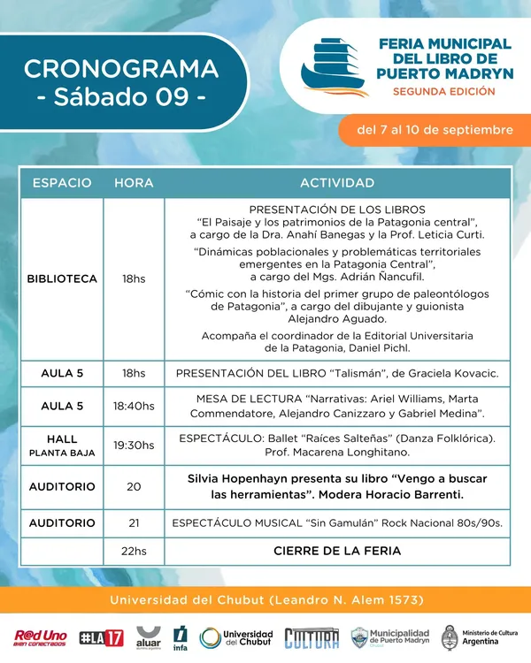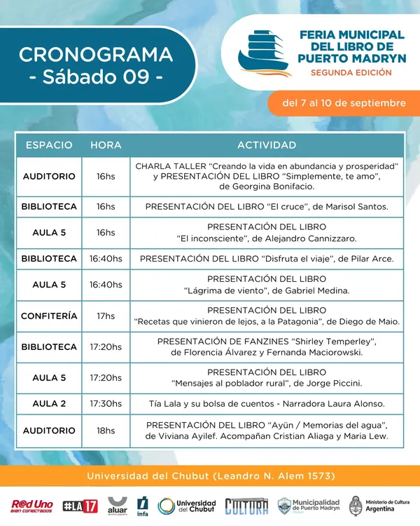 La Universidad del Chubut es el escenario donde se desarrolla la 2ª edición de la Feria Municipal del Libro de Puerto Madryn, con más de 20 stands que ofrecen una gran variedad de editoriales y librerías que muestran sus propuestas.