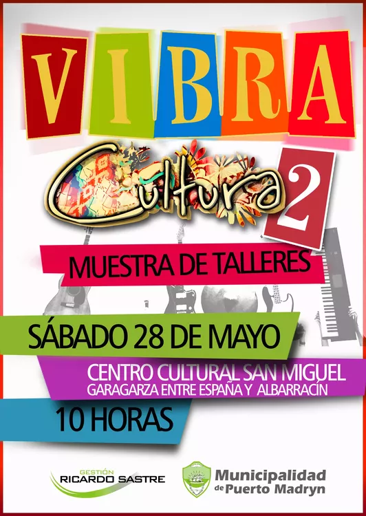 Será este sábado desde las 10 en el Centro Cultural San Miguel. Habrá talleres de cocina, baile, música y manualidades, entre otras ofertas.La Subsecretaría de Gestión Cultural de la Municipalidad de Puerto Madryn, a través de la coordinación de Talleres, invita a participar de la segunda edición de “Vibra Cultura”.