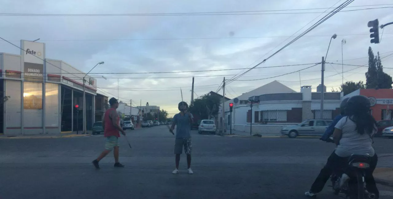 Una vecina nos envía al whatsapp de la radio, 2804201927, esta toma de la esquina de M. A. Zar y Gales en la que un artista callejero muestra su arte de malabarismo con machetes.