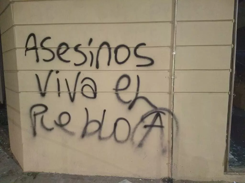 Además, rompieron con palos y piedras los vidrios del edificio, por lo que personal de la Comisaría 5 de la Policía de la Ciudad se trasladó hasta el lugar. “Fuera Benetton” y “Asesinos, viva el Pueblo” son algunas de las pintadas que dejaron los atacantes en las paredes de la Casa de Río Negro.