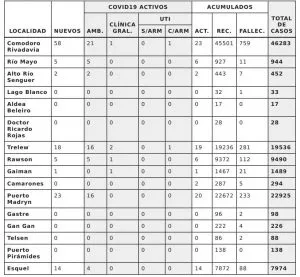 CHUBUT REPORTÓ 146 POSITIVOS DE COVID Y 2 FALLECIDOS