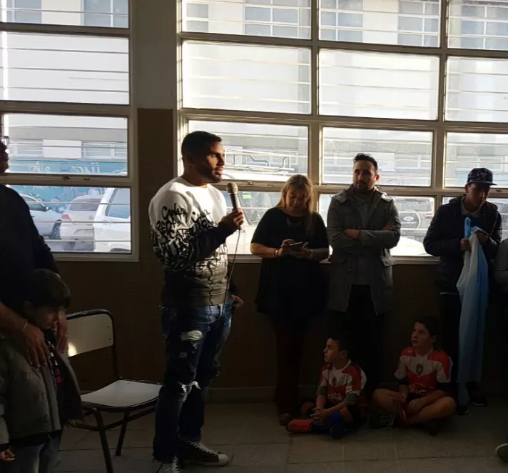 El defensor de la selección argentina estuvo en la Escuela 775 y ofreció unas palabras a la comunid...