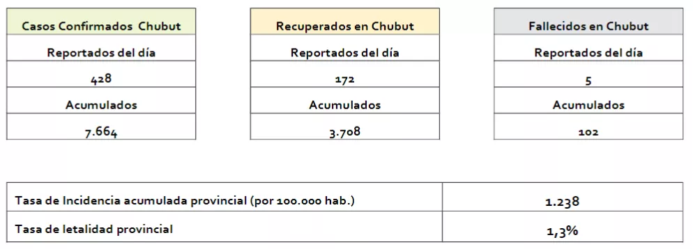 La provincia acumula 7.664 positivos y reporta a la fecha, 102 fallecidos. # Casos confirmados e...
