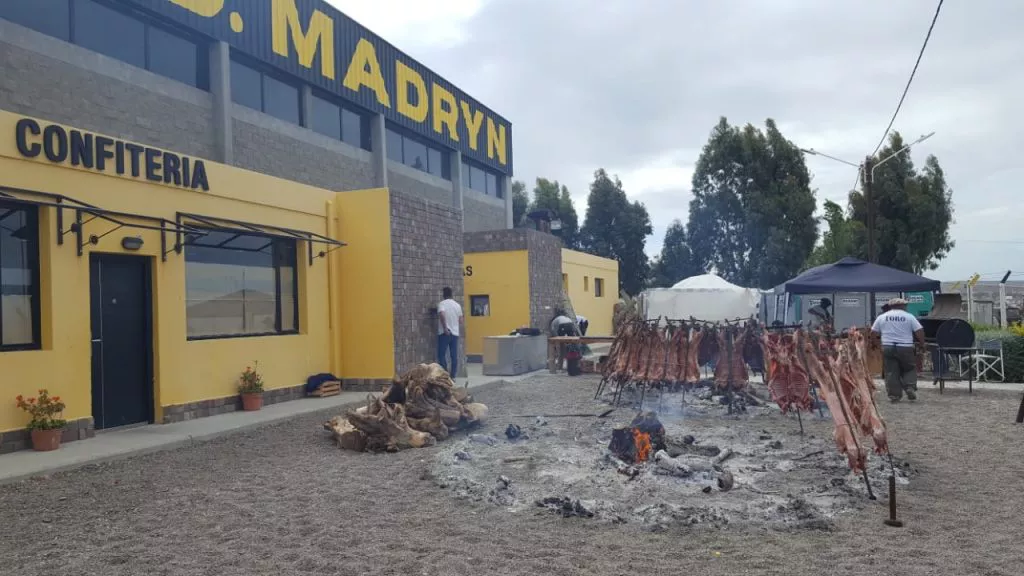 En el fogón del Club J.J. Moreno en la Fiesta Nacional del Cordero se prepara "cordero al hilo". ...
