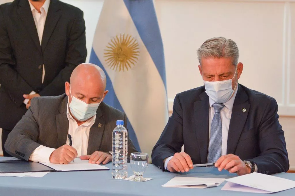 La rúbrica se concretó este martes, en un acto que el intendente Damián Biss compartió con el gob...