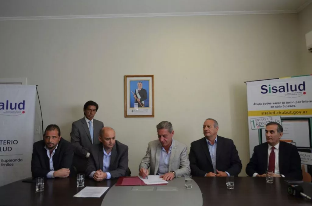 El ministro de Salud, Fabián Puratich, y el ministro de Gobierno y Justicia del Chubut, José Marí...