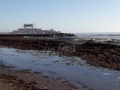 La gran cantidad de algas obligó a los guardavidas a cerrar la playa Bristol. El biólogo Hugo Be...