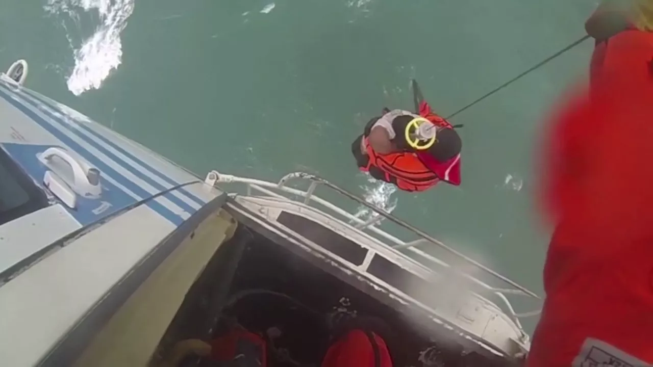 Prefectura Naval difundió las imágenes del momento en que es sacado con vida del mar el marinero ...