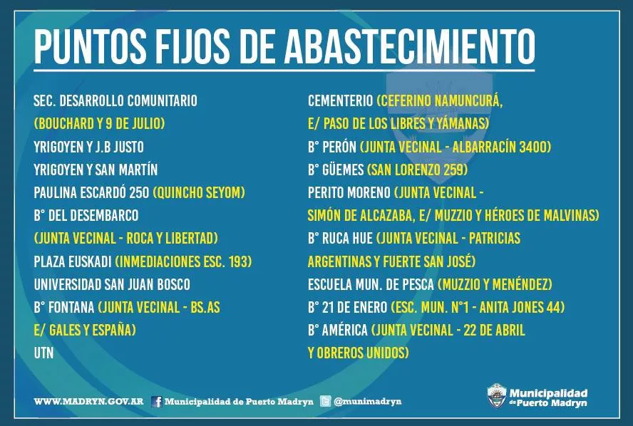 ESTOS SON LOS PUNTOS FIJOS. Además el Municipio dispuso, en base a la disponibilidad de agua pota...