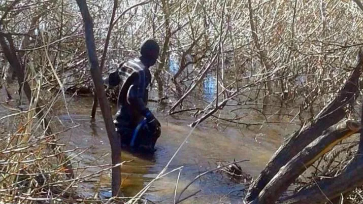 Estaba sumergido y enganchado a las ramas de los sauces. En horas del mediodía un cuerpo con ro...